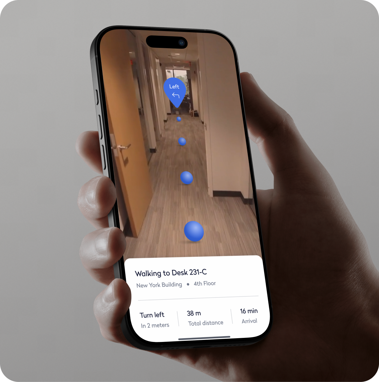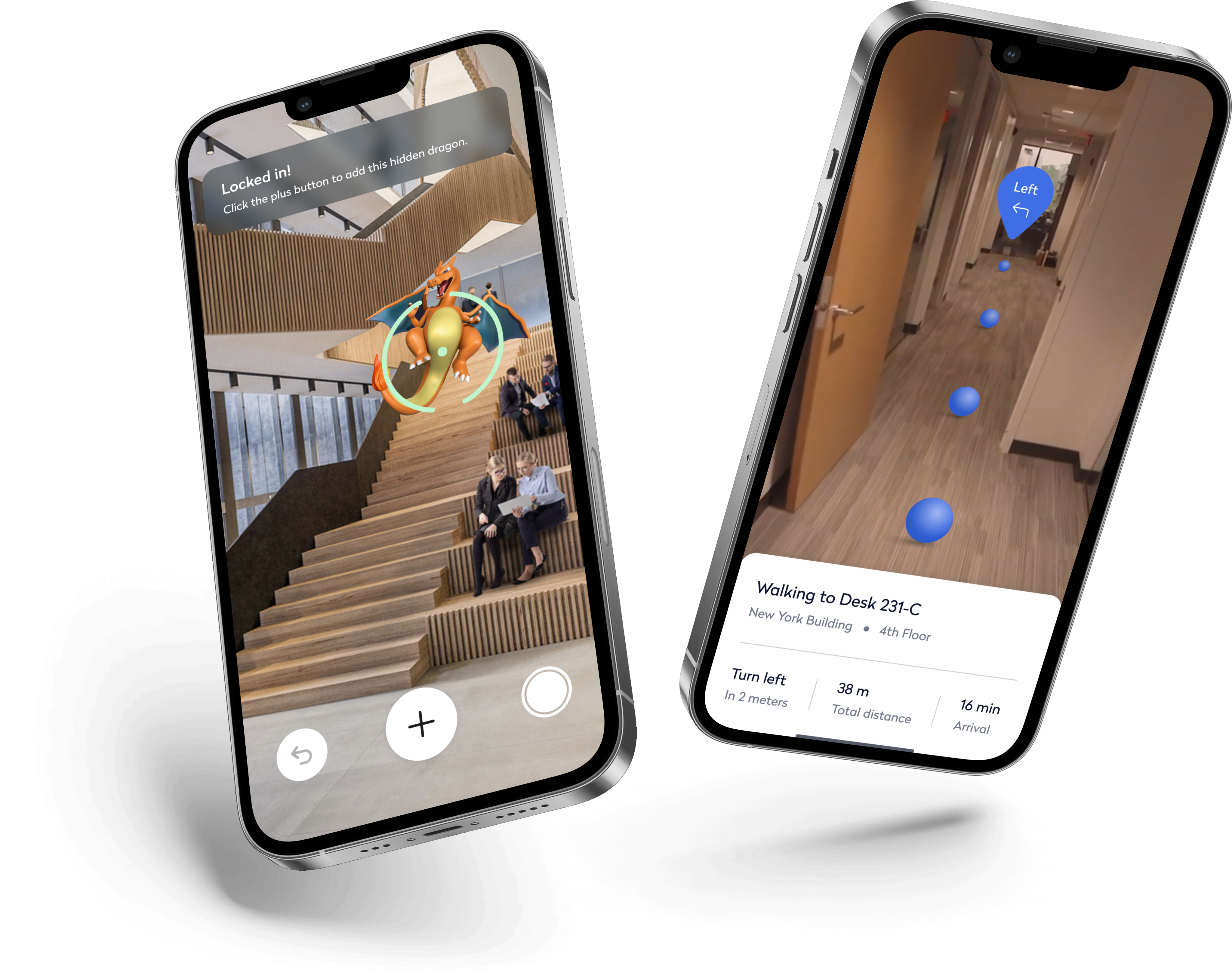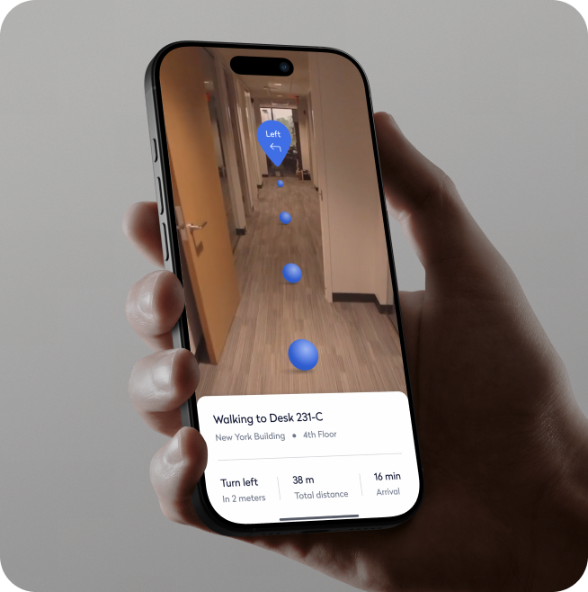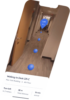 To reimagine in-office navigation, we launched an exploratory project called Architectural Navigator—a mobile AR experience that let users explore complex office layouts through an immersive, intuitive interface. It eliminated common way-finding frustrations by overlaying real-time guidance on physical spaces. We also piloted a gamified version—Dragon Hunt—an AR team challenge that turned navigation into a collaborative experience, blending utility with playful engagement to enhance team connection and familiarity with the office.